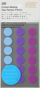 見出しや分類に最適なマスキング丸シールです。薄くて丈夫な和紙素材を使用し、発色や質感にもこだわりました。直径5mm、8mm、16mm、20mmの4つのサイズに、それぞれ18色の豊富な色数を用意しています。重ねて貼ることで、多彩な色の変化が楽しめるため、分類、識別だけでなく、メモ留めや装飾、描画用(丸シールアート)にもお使いいただけます。
